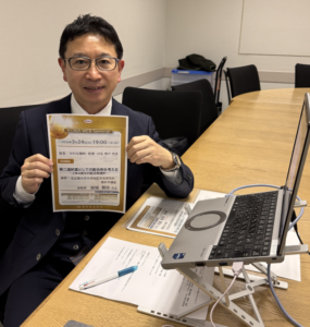 緑内障治療のウェブセミナーの座長を務めました 2026年3月26日 カテゴリー: トピックス ブログ 2026年3月24日 眼科の医師に対する緑内障治療についてのウェブセミナーの座長を務めました。 新しい知見も取り入れて、良い診療を行っていきたいと思います。